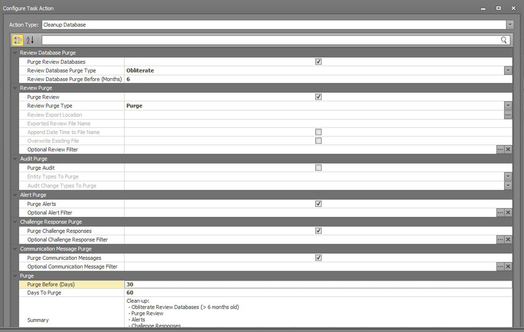 Cleanup Database Task Action